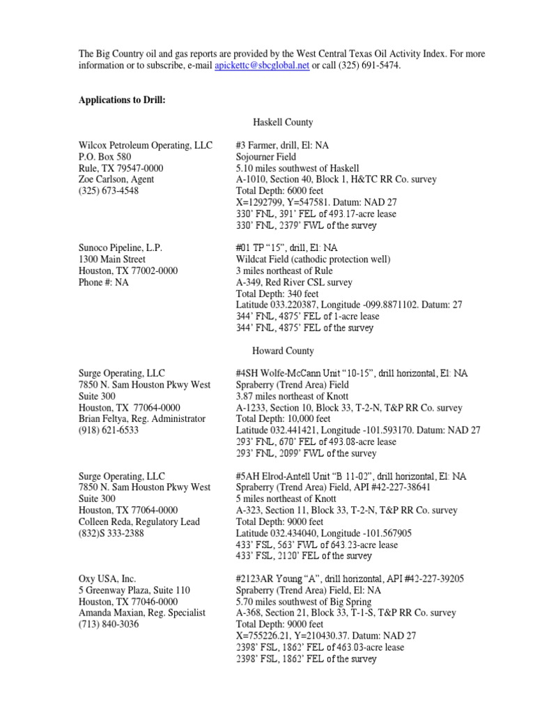 Abilene, Texas/Abilene Reporter News Oil Report 8/11/2017