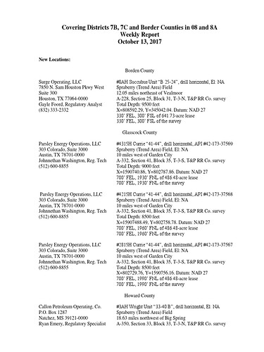 Abilene, Texas/Abilene Reporter News Oil Report10/13/2017