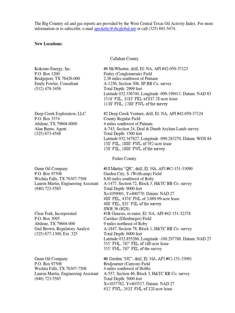 Abilene, Texas Oil and Gas Report-February 16, 2018
