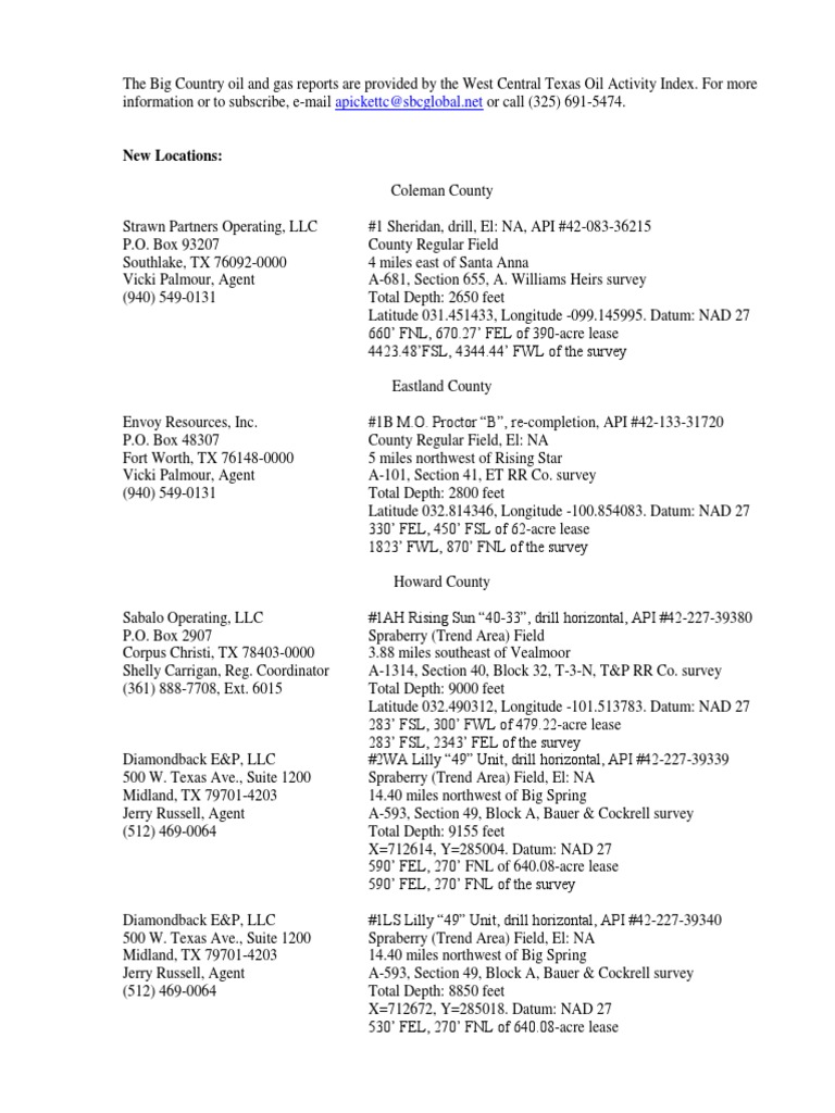 Abilene, Texas Oil and Gas Report-January 05, 2018