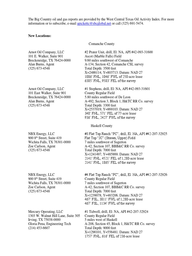 Abilene, Texas Oil and Gas Report-March 23, 2018