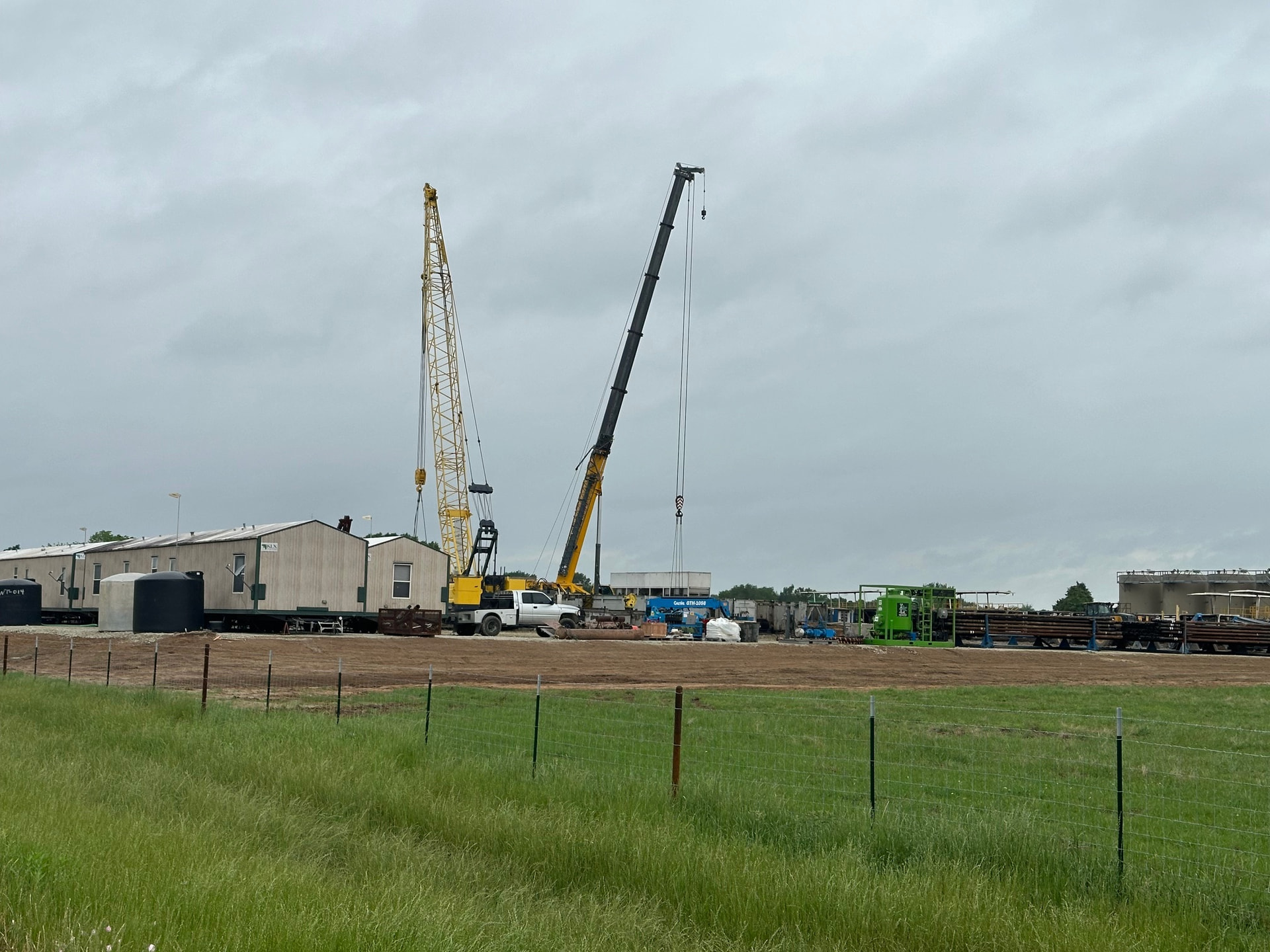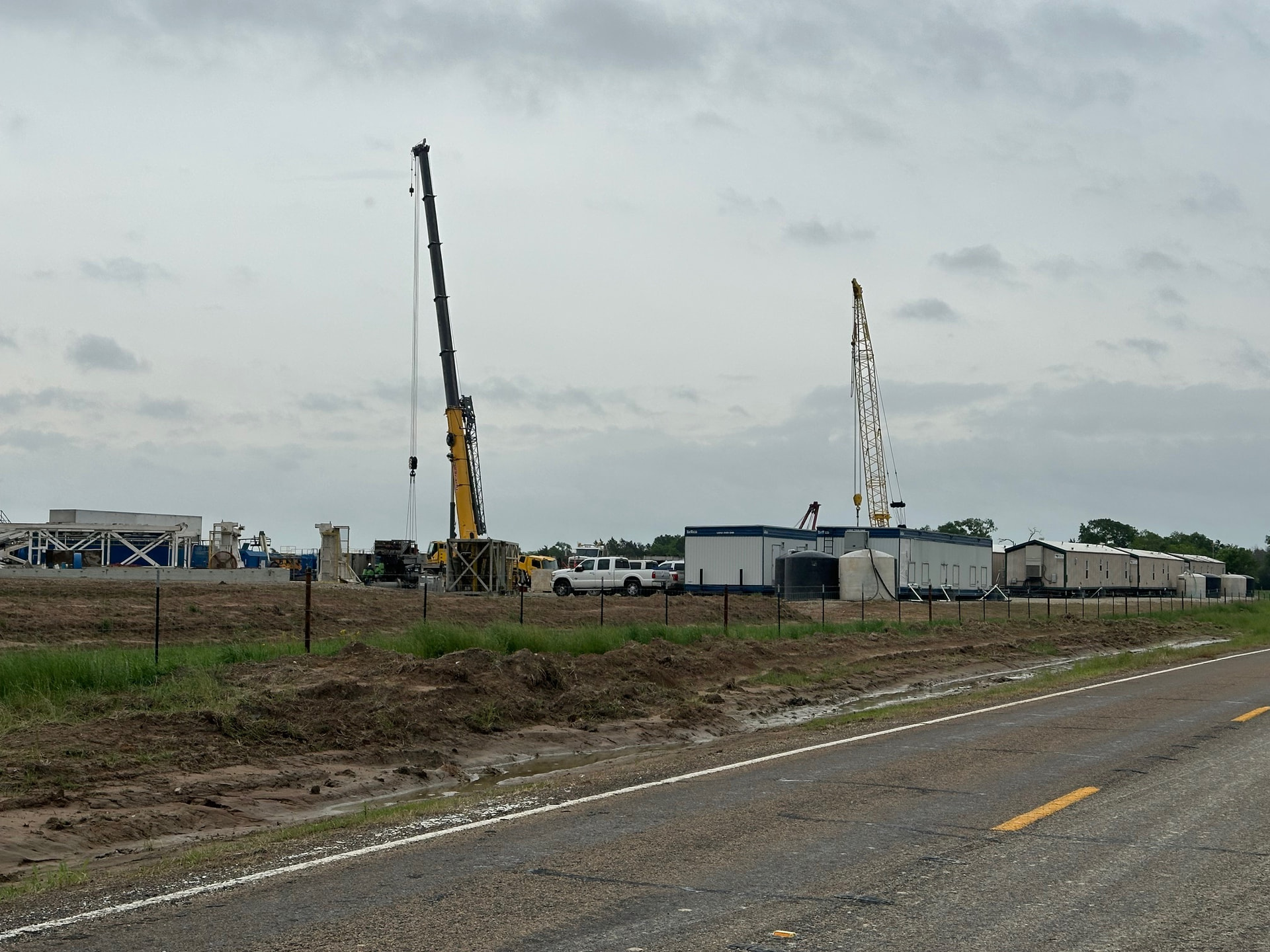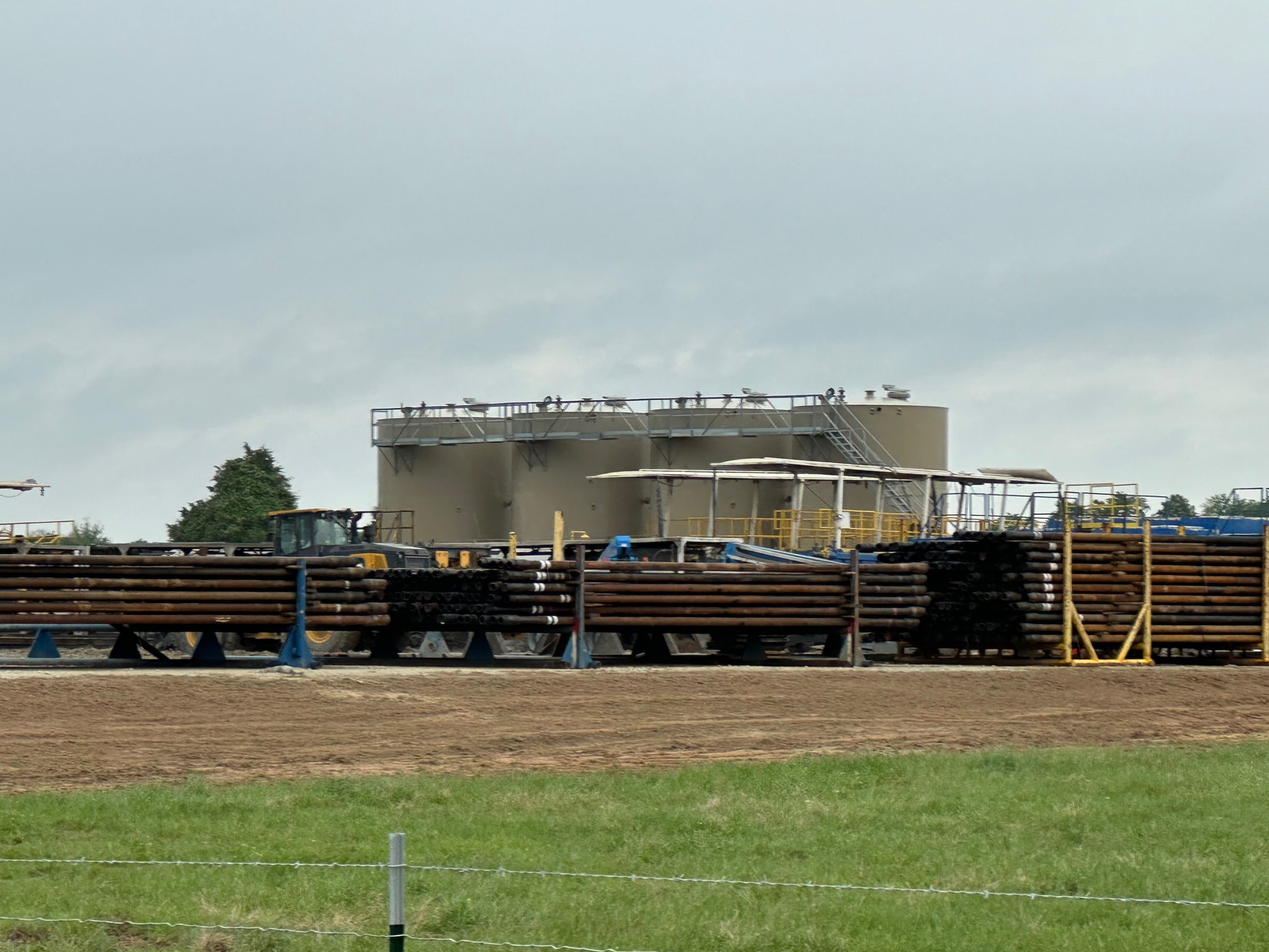 I drove by the wellsite today, and the rig was in the final stages of teardown. Rig arrived on April 1, and drilling was completed no later than April 11. If it was drilled according to plan, that is 20,000 feet(9,000 tvd and 11,000 lateral) of drilling in ten days or less. Looks like an EOG operation! Four large permanent storage tanks have been installed. Here are some photos: