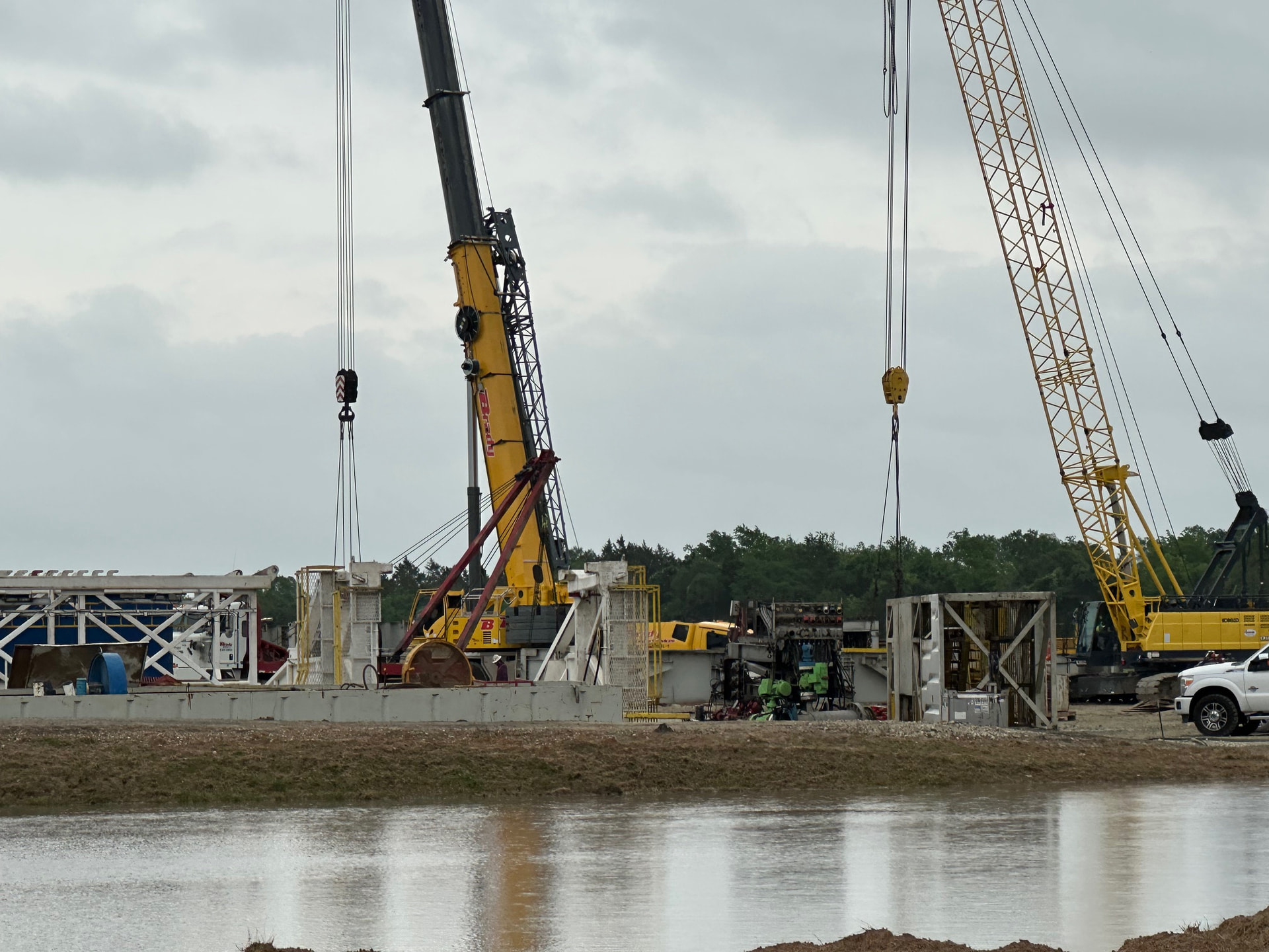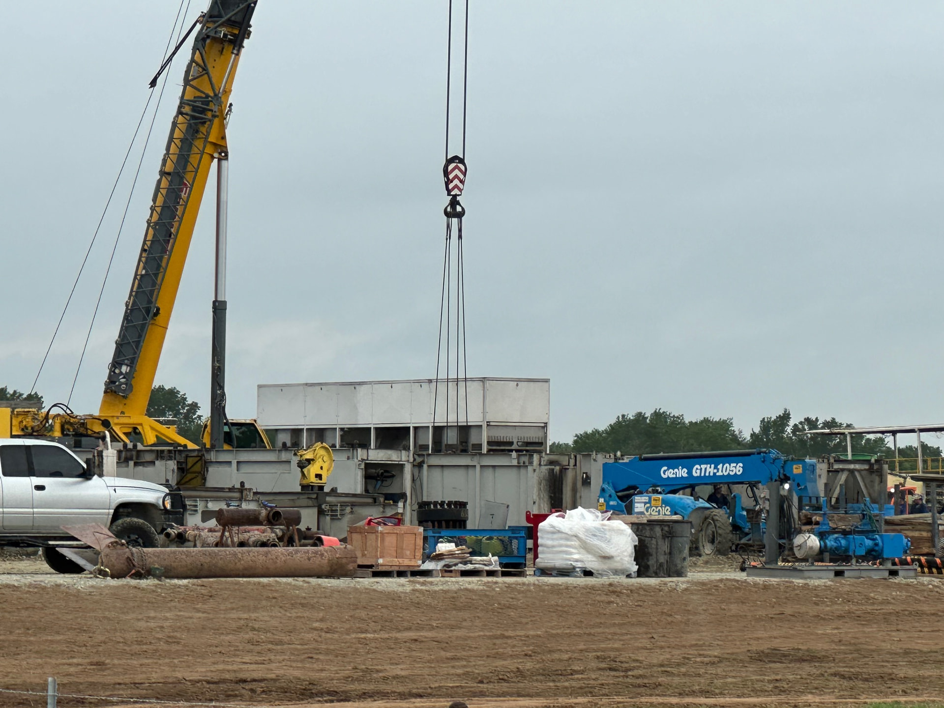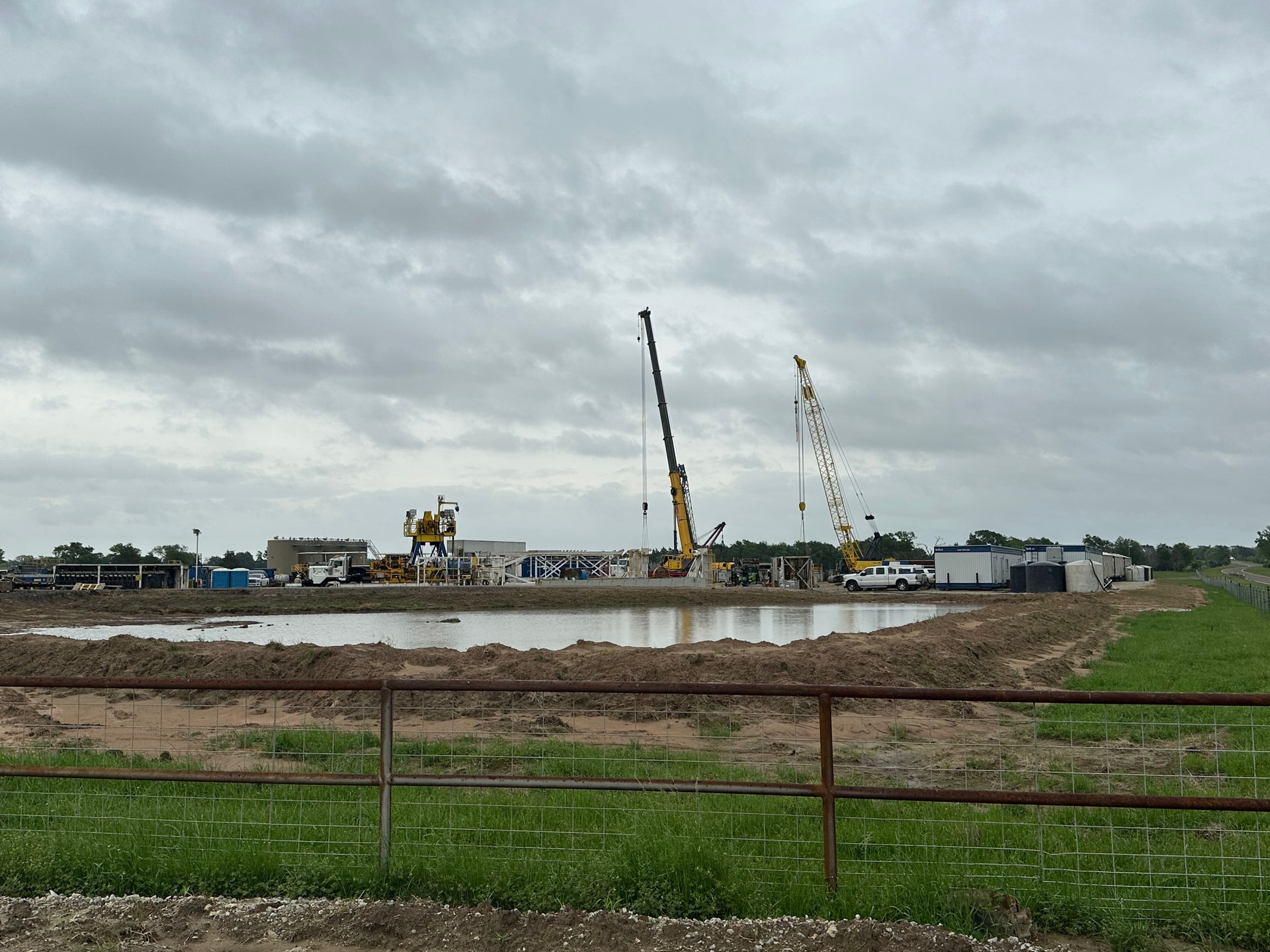 I drove by the wellsite today, and the rig was in the final stages of teardown. Rig arrived on April 1, and drilling was completed no later than April 11. If it was drilled according to plan, that is 20,000 feet(9,000 tvd and 11,000 lateral) of drilling in ten days or less. Looks like an EOG operation! Four large permanent storage tanks have been installed. Here are some photos: