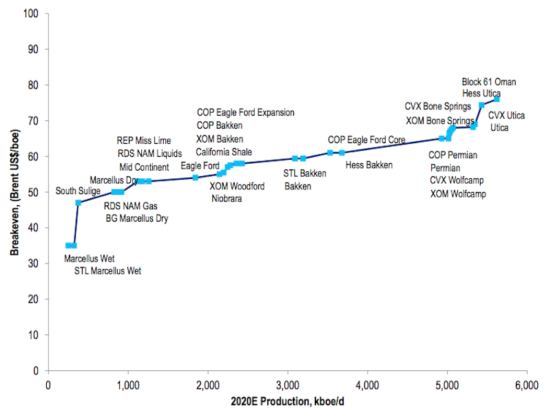 I’d also like to point out you can’t broad-brush breakeven prices across the various shale plays. The Bakken is different from the Eagle Ford, and the Eagle Ford is different from the Permian. Within each basin, there’s a large variation in the quality of the shale formations. You can have excellent results in the western part of one County, and then go over to the eastern part, say 10-20 miles away, and not experience the same results. The quality of the shale formations is very localized.