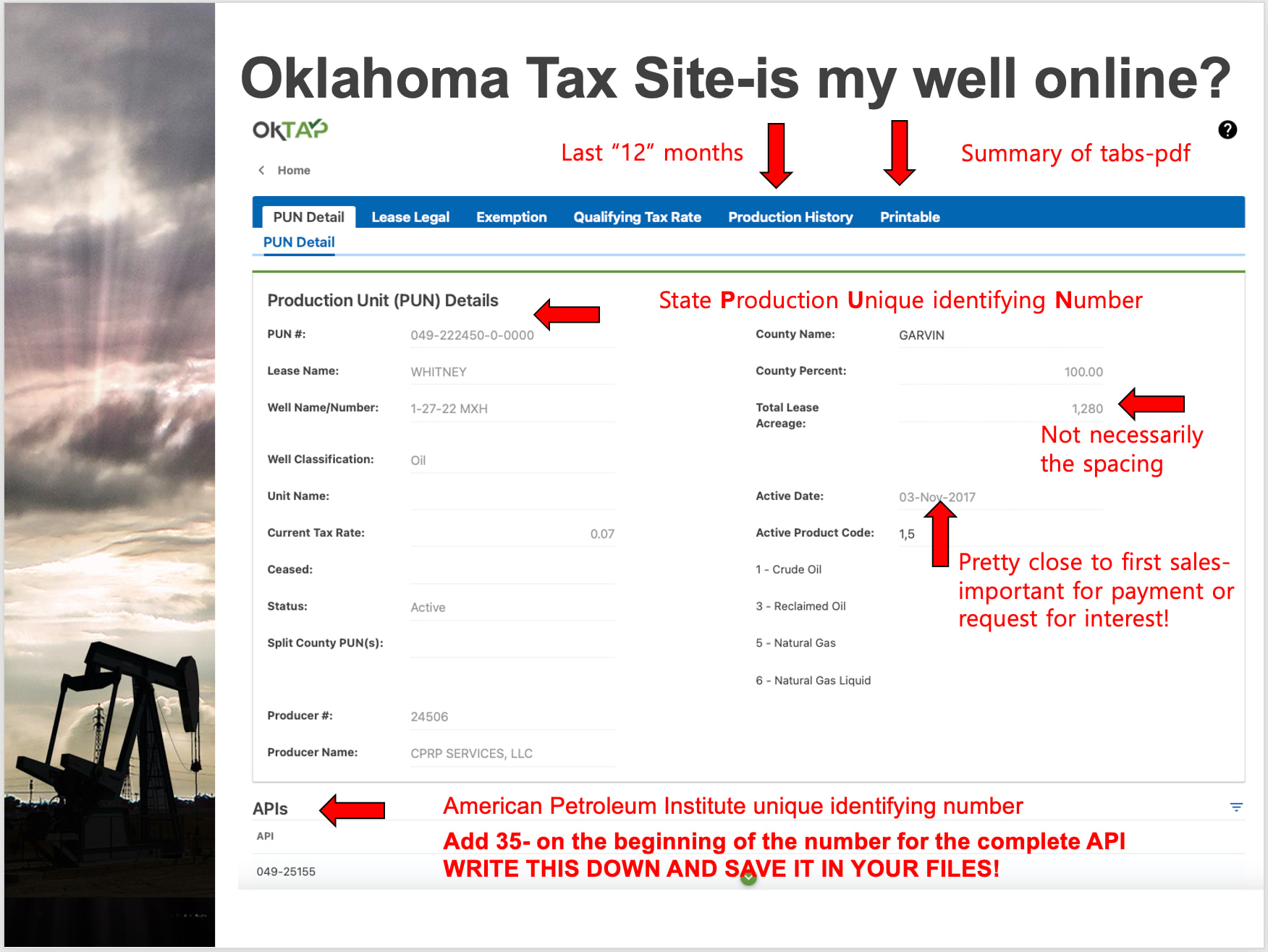 Go to the Public PUN Search, then type in 12 02N 04W in the Search by Legal spot near the bottom. Note that you may have better luck with searching the bottom hole location first as the surface may not be in your acreage. You can also search on the well name which is called “lease name” in the this website.