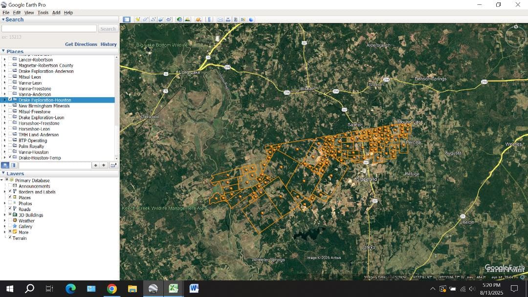 A New Location by Drake (Chesapeake Exploration, LLC) is being built just north of Latexo, Texas in Houston County in the W.M. Marsh A-743. The rumor is that is going to only be another TEST Well like the Yancy Well northwest of Grapeland. There is a lot of unleased acreage in the area. Horrible ground work by Drake! 8-27-25