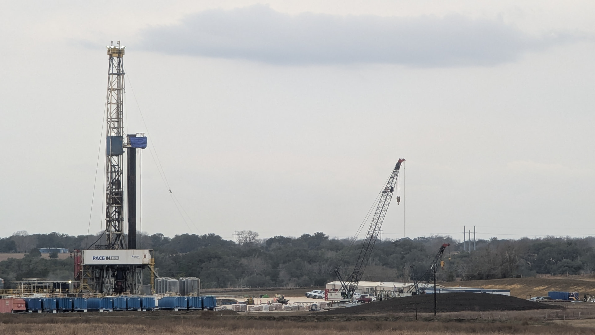 Rawlins/Bruhn well still drilling this afternoon. I did see where they knocked down those dirt walls on the southern side. I think if they were planning to come back to this pad anytime soon (like in 2026) they would have left those up.