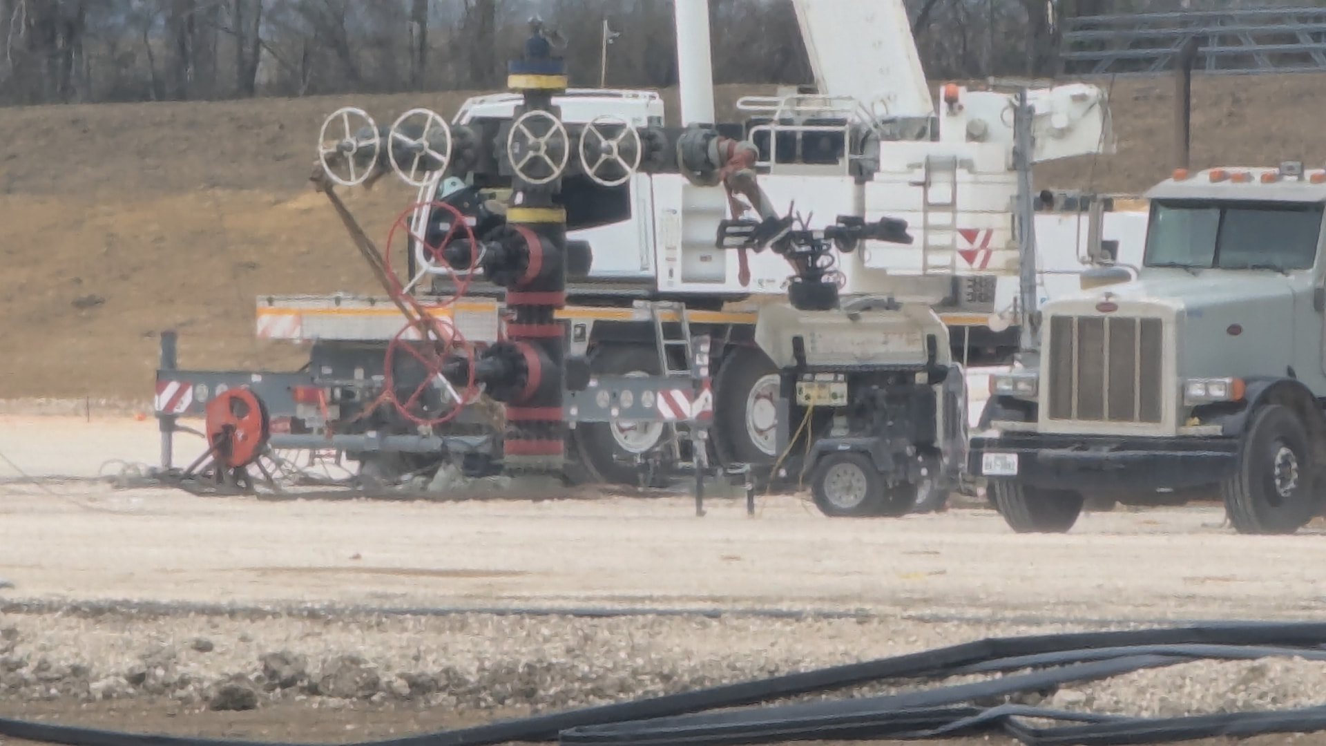 Not so good news from the pecan pad. Monster is going to get a working over I think. 2 large frack tanks 2 small frack tanks pipe racks rework rig small tree and a bunch of junk. My guess the oil pipes on Monster need a cleaning even though they have acid tanks by each well head.