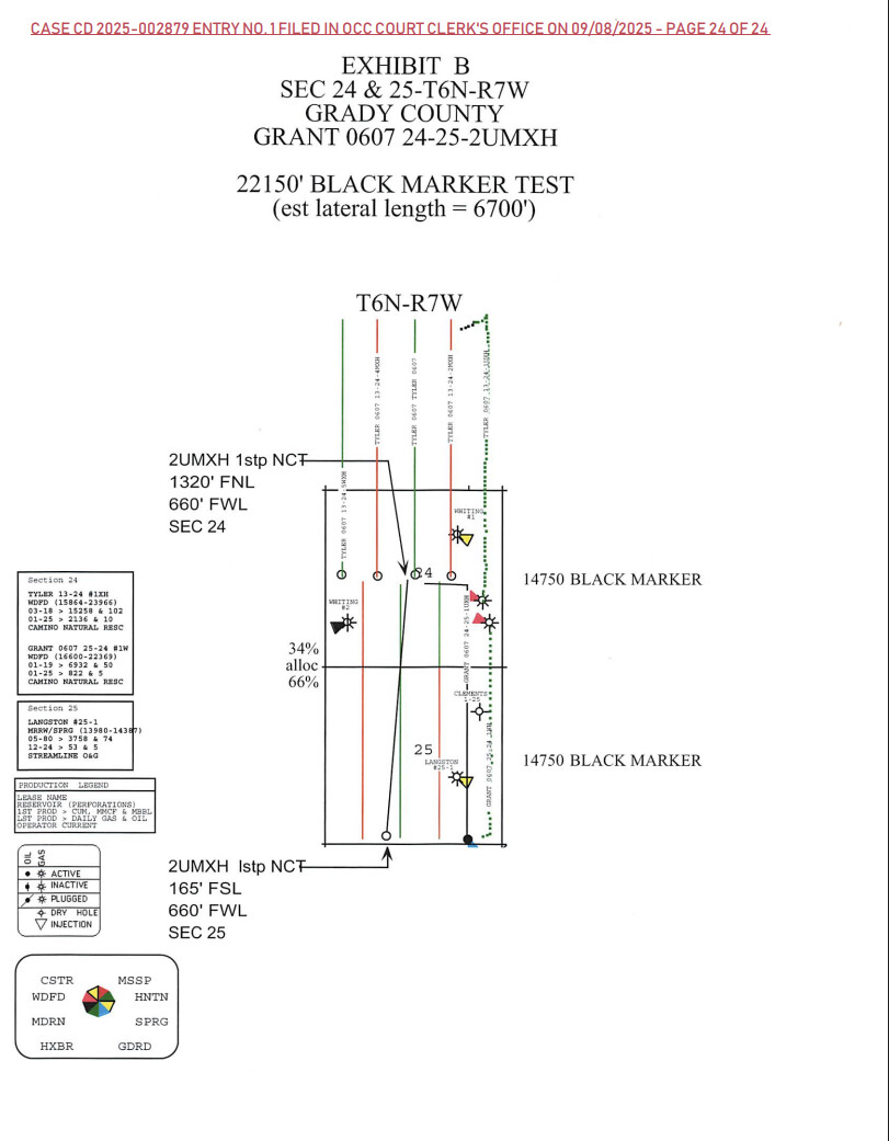 Those cases refer to section 24/25-6N-7W. You may find it helpful to put the cases in numeric order and then keep the additional items that will come in date order. Read them and they will tell you what is about to happen. The back of several of them will give exhibits which are helpful. Here is the one from 2879 showing where the wells are planned and what reservoir. This set is telling you that additional wells will be allowed in the sections and gives maps of where they will be if allowed.