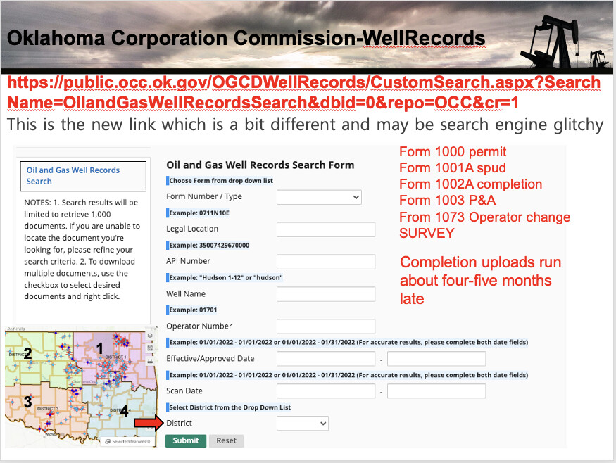 For Oklahoma, the well records site is: Click on the link that says ERROR