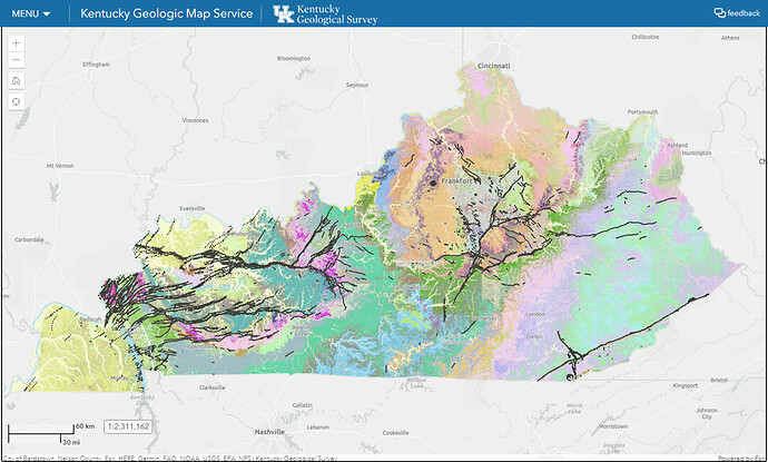The map is sometimes slow to load as it is a pretty extensive file. I have found one can speed it up some by unchecking the first two items under the “Customize Map” section on the left side of the page (the 24K contours). After expanding the map several times to find your property, you can carefully click on the point where the well begins and information will pop up about that well. In the pop-up, click the small right arrow at the top of the pop-up box to scroll through different pages. Usually on one of those pages there will be a link to maps of the well itself. Click on “Documents (DjVU)” and the map will appear that shows a lot of information like mineral owners and the percentage of property that the well covers. Most of the older wells have the information but no map—older like 1960 and back. Hope this helps you some in knowing where wells will be and are drilled.