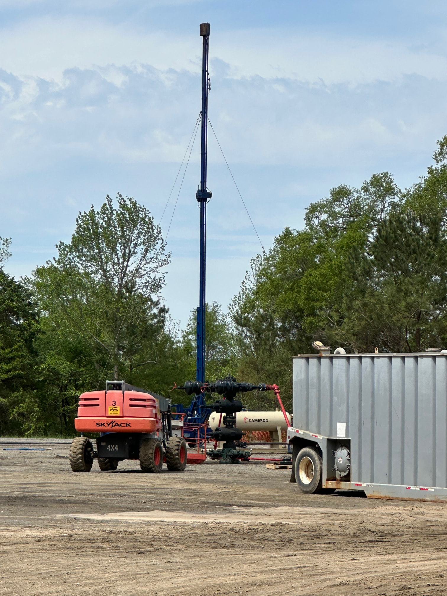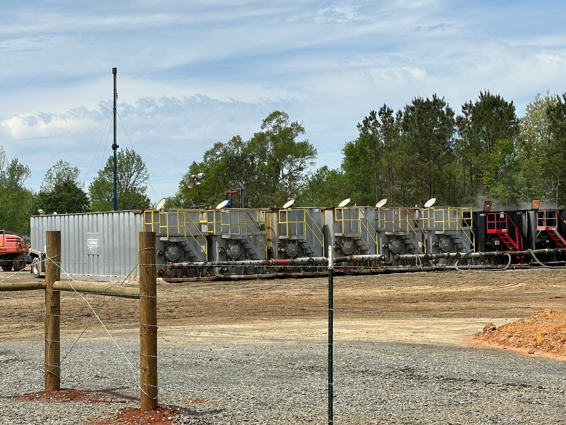 Sand trucks are filling the silos today. In addition, Flying A Pumping Services pump trucks are moving into position on the pad.