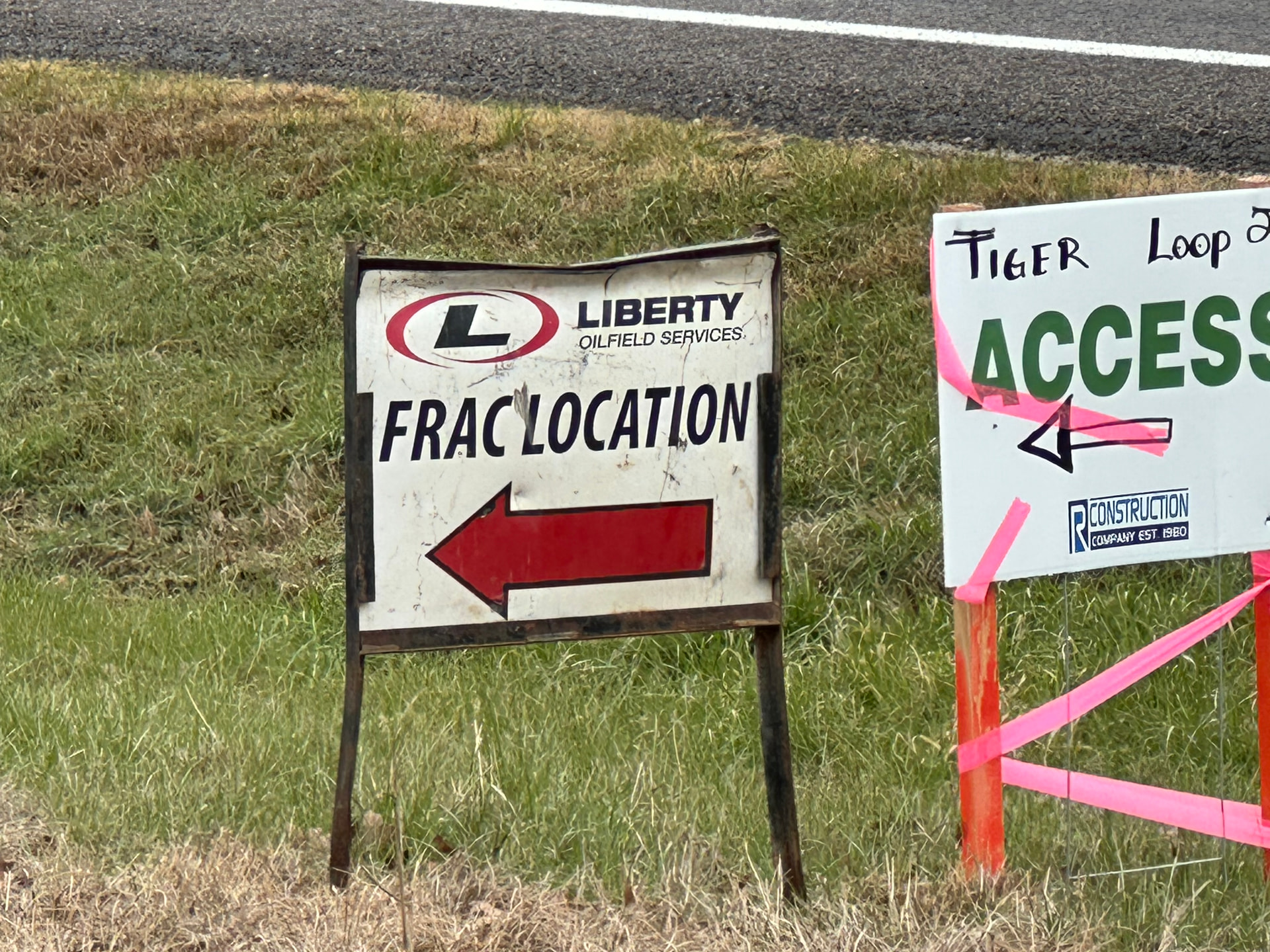 Drove by the wellsite this afternoon and there was a Liberty frac sign in place where the county road meets Highway 79. Crane was up above the well head, and there was a flare burning. I was told this probably indicates that a DFIT test has been done to measure permeability and help construct the frac design.