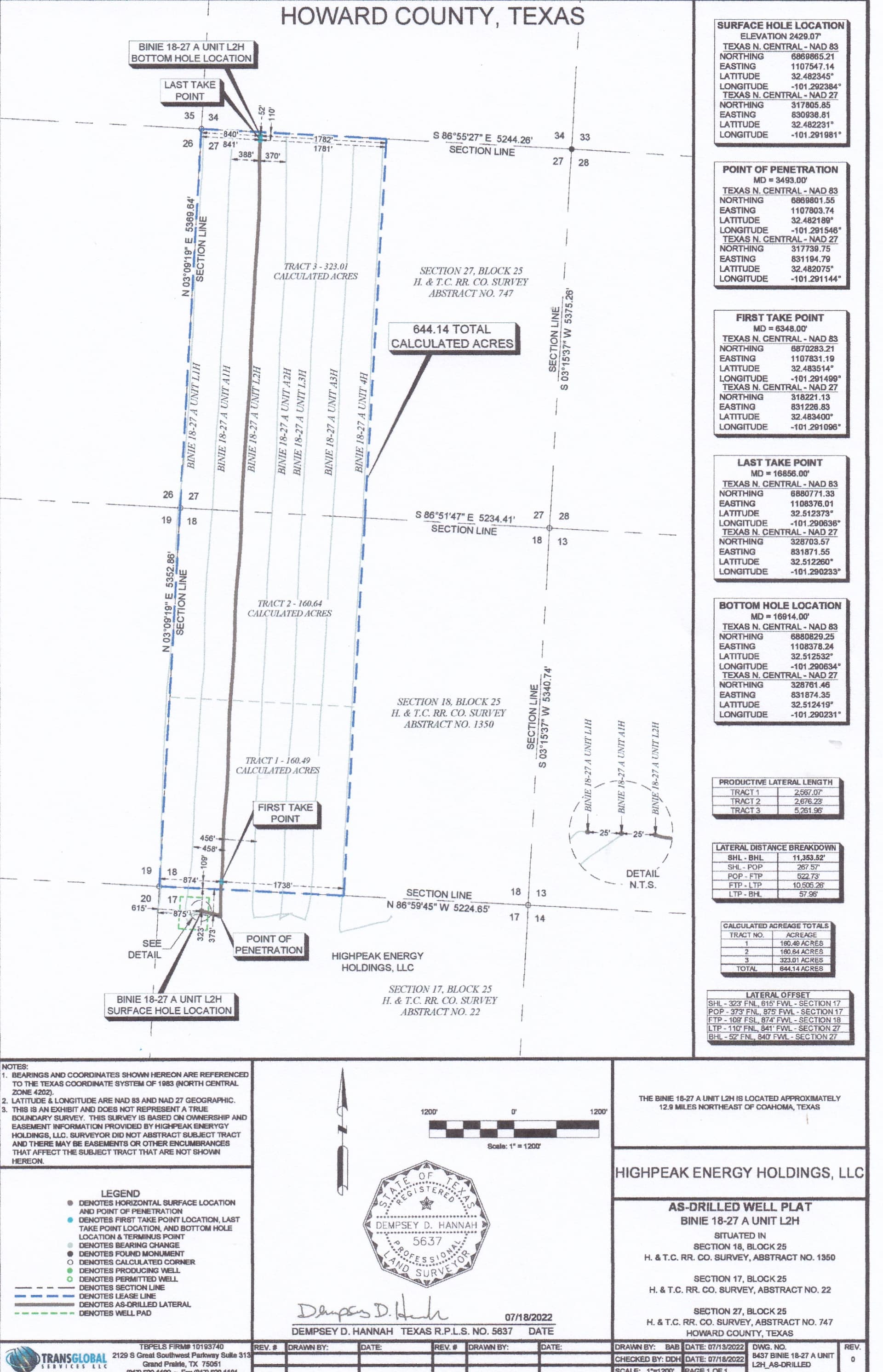 Both in Howard County texas::: BLK: 25, BINI 18-27 A UNIT, highpeak energy, HOLDIN SPRAYBERRY trend area and BLK: 25, TONY 18-34 B UNIT, highpeak energy, HOLDIN, SPRAYBERRY trend area