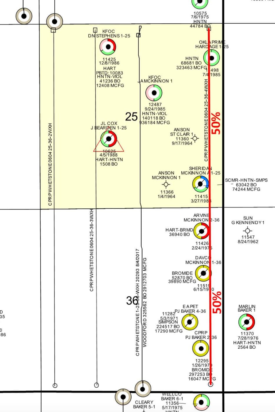 Whetstone 1-25-36WXH is the only well listed on the OTC tax site (which is free). It has been online since 9/1/2017. Whetstone 0604 25-36 2WHX and 3MXH only have permits. They do not have a spud report filed. A new permit was filed for 3WXH on 3/1/22, so they may have changed their mind on reservoir for that location. The case for that one is supposed to be reopened in Oct 2022 for any directional survey.