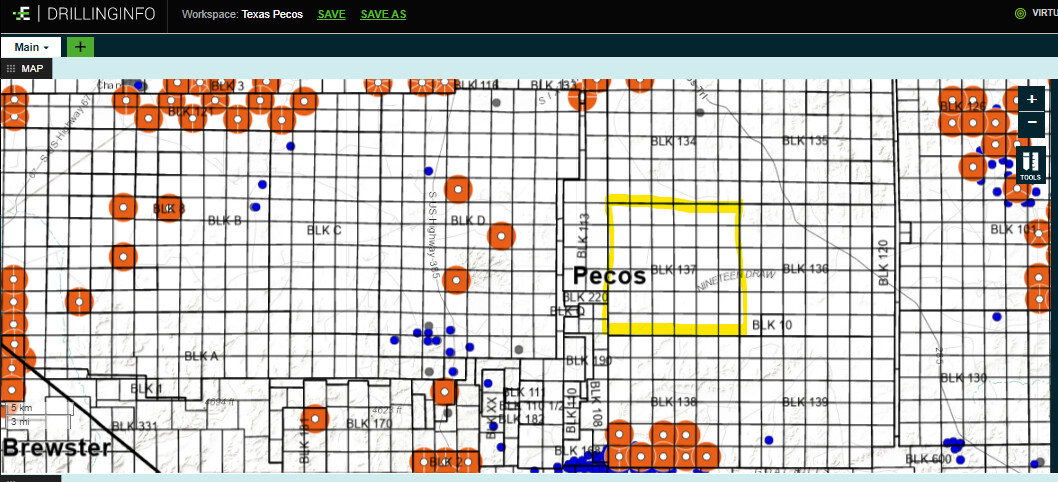 Boy, Block 137 is definitely a dead zone. No production, no wells and no leases in the last ten years. Leases are depicted by the orange circles in the Drilling Info image below (Block 137 is highlighted):