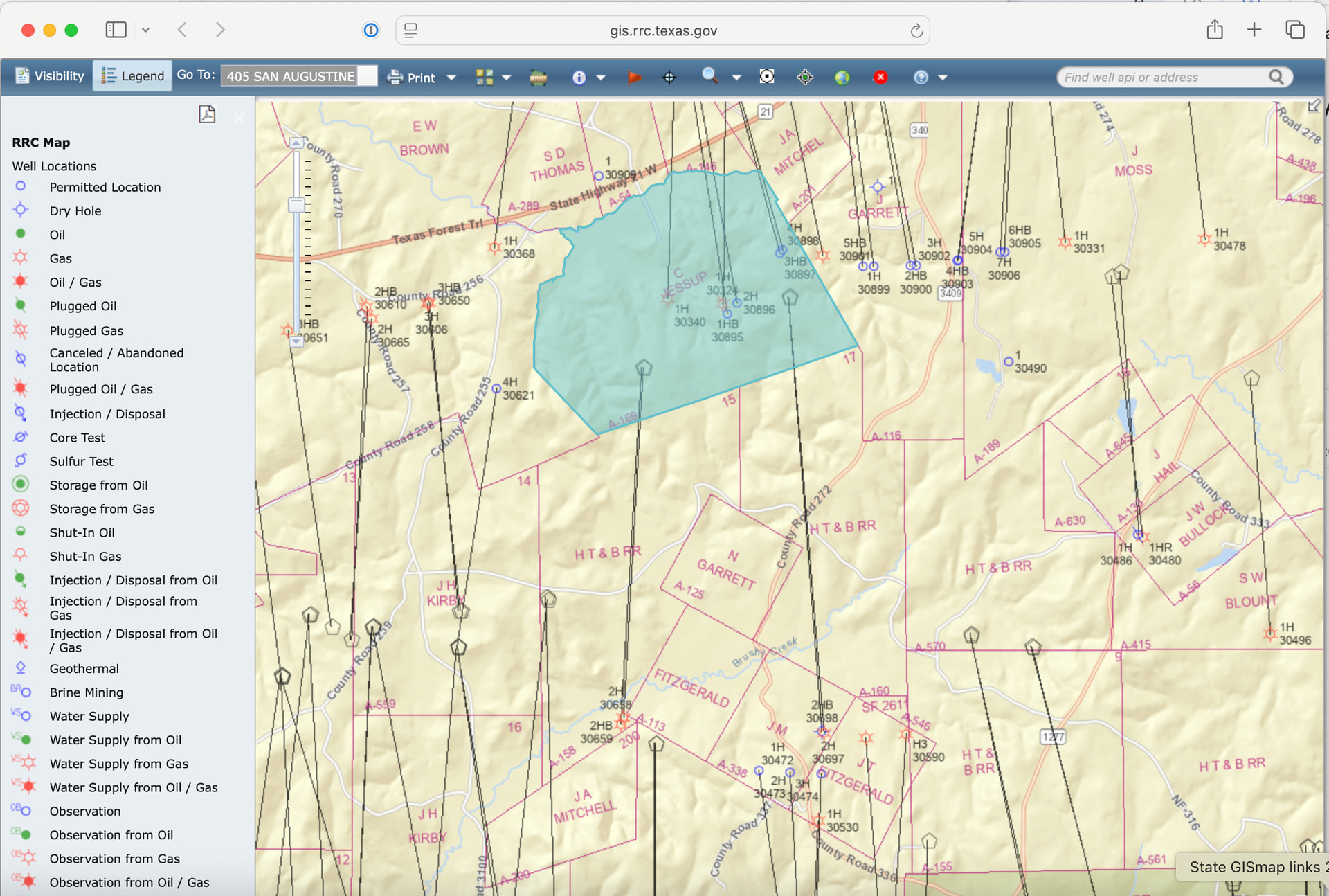The C Jessup Survey A-169 is just north and entirely different than the Garrett Abstract. Fitzgerald is just to the south of Garrett. wells in Apex has a rig or two running into Jessup for horizontal well. Ned Garrett and Fitzgerald are open for horizontal drilling.