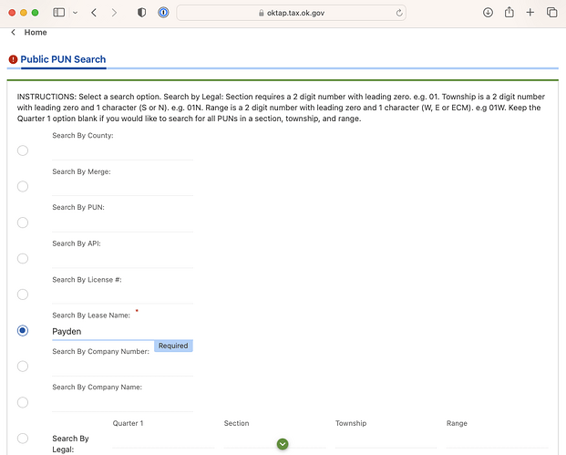 The production data can be found at the OTC site. https://oktap.tax.ok.gov/oktap/web/_/ Scroll down to the HELP box and the Public PUN option. Put Payden in the Lease Name box