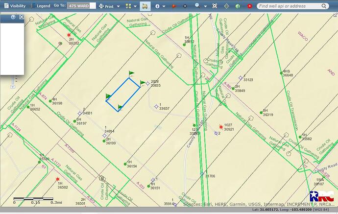 your property (blue rectangle sketch on texas Oil & Gas RRC map).