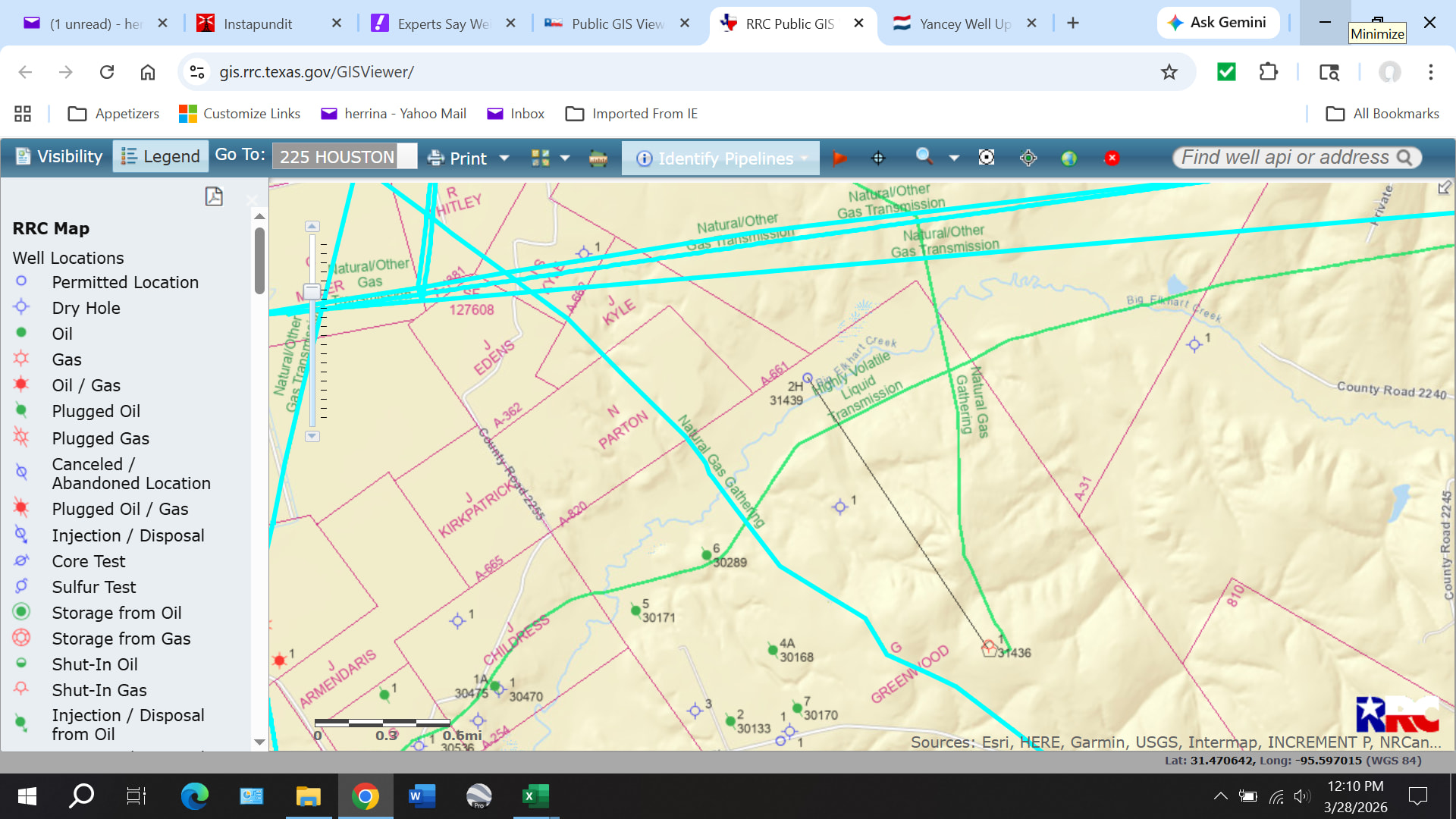 The horizontal well in this screenshot is the Yancey well. As you can see, it is now connected to a gas pipeline.